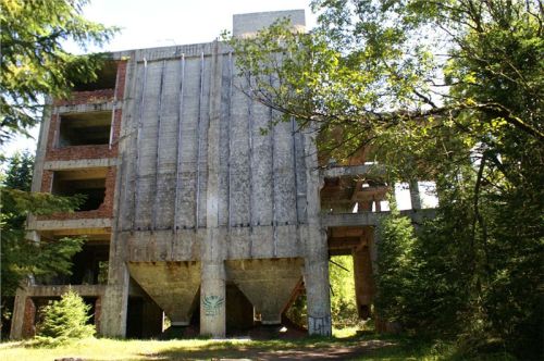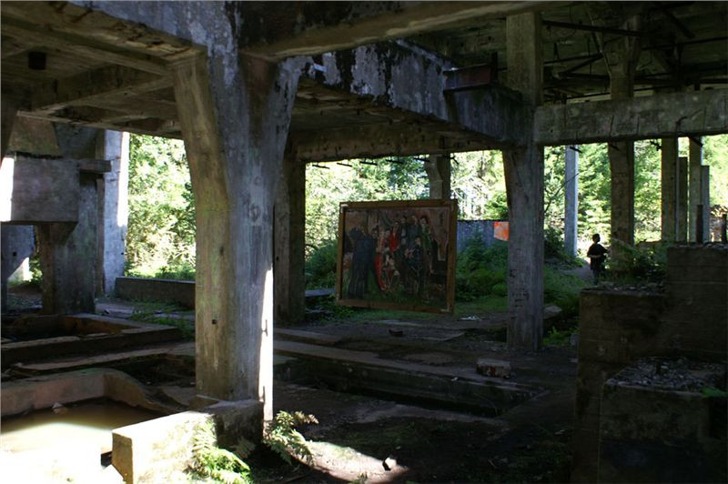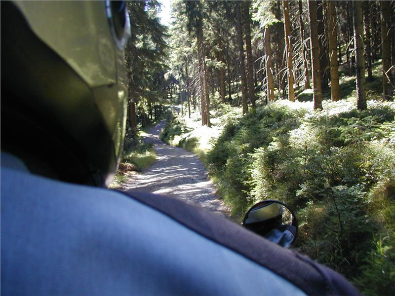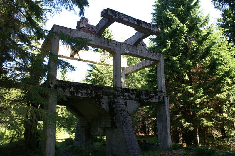 Okolí vykazuje pozůstatky po důlní činnosti, Jirka se proto snaží vypátrat kudy bychom se dostali k pozůstatkům bývalého lomu a továrny na zpracování cínových rud Rolava. Usedáme na náš stroj a po zhruba 2 km odbočujeme do lesa, kde tuto technickou památku nacházíme. Jirka nadšeně obíhá okolí a fotí, já se věnuji sběru borůvek.