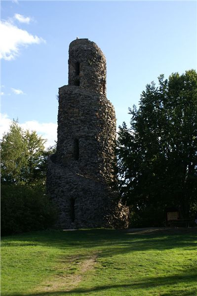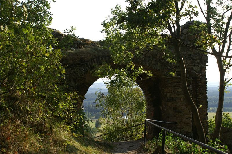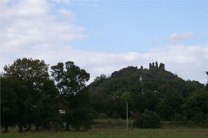 Poté, co vyfuníme na 717 m vysoký kopec, kde se nachází impozantní zřícenina gotického hradu, otevře se před námi nádherný výhled do blízkého i vzdálenější okolí Doupovských vrchů a Krušných hor. Dloužící se stíny nadcházejícího podvečera poskytly nejen zajímavé pohledy do okolí, ale zlákaly nás k zvěčnění těchto prchavých okamžiků pomocí fotografického aparátu, a k tomu nás nemusel nikdo pobízet. Plnými doušky jsme tuto chvíli vychutnali, v tento okamžik byly ty tam všechny mnohdy malicherné starosti a problémy právě prožitého týdne. Jen zvolna beze spěchu jsme sestoupili dolů k našemu motocyklu. Pak jsme již uháněli dále směr Rotava. Ze Staré Rotavy Jirka odbočil vzhůru do strmého koce směr sídliště, cesta stoupá hustými lesy a v nastávajícím soumraku jsem již začala pochybovat, že jedeme dobře. Nicméně po chvíli vyjíždíme na planinu posetou paneláky a neomylně brzdíme u nám již známé ubytovny TJ.