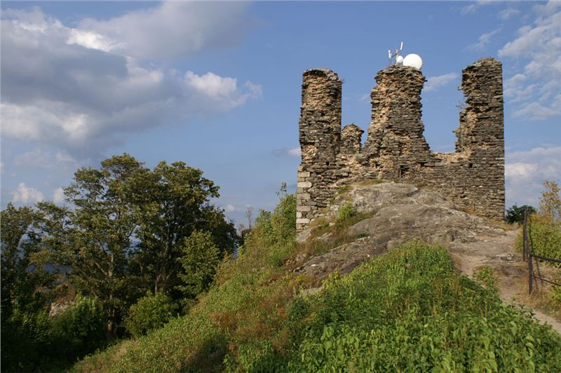 výšce 570 m je ve velmi dobrém stavu, působí lákavě a romanticky, nicméně realita je taková, že tento objekt přešel v roce 1948 do soukromých rukou a je pro veřejnost nepřístupný. Snažila jsem se. Okukuji okolí a pomoci přátelsky vyhlížejícího bernardýna liknavě střežícího přístup do objektu pronikám na pozemek, čímž vyburcuji udivenou majitelku, která mi jen potvrdí naše neblahé tušení, že na rozhlednu nemůžeme a ani v budoucnosti otevřena nebude.