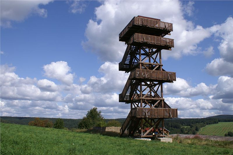 Rozhledový den s prvky památek techniky. Začínáme rozhlednou stojící na území krušnohorské osady Bublava (smutně proslulé pomníkem rozestavěného akvaparku). Na Olověném vrchu (Bleiberg) jsme již byli v roce 2005, ale rozhledna byla zavřená. Ani dnes nemáme štěstí, rozhledna je sice otevřena denně, ale je navázána na provoz restaurace, která má v pondělí zavírací den, a tak máme opět smůlu. Nacházíme se ve výšce 802 m a i tak je odsud pěkný výhled.