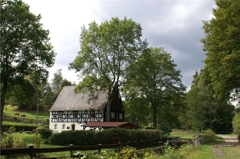 Při další cestě nás zdržují četné objížďky a uzavírky mostů. Nicméně přece jen dospějeme k troskám pece v Šindelové ( torzo železářské vysokopecní huti) a posléze i do obce Přebuz. Ta byla kdysi rušným hornickým městem, kde se těžila cínová ruda. Nyní je okolí obce známé jako přírodní park. Jsou zde močály i rašeliniště, krajina má jakousi tichou zádumčivost, která na člověka působí, připomíná mi šumavské pláně s rašeliništi. Je to výborné místo pro zimní lyžařské výlety nebo výjezdy na kole. Fotím si momentálně uzavřenou Kovářskou hospodu, která bude asi jedním z mála míst, kde by se dalo ubytovat.