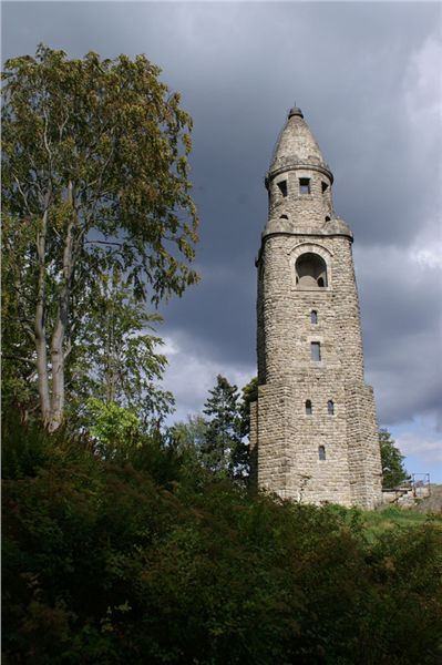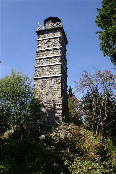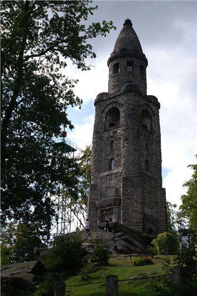 Rozhledna byla dokončená v roce 1904, jedná se o 34 m vysokou stavbu ze žulových kvádrů, která byla pojmenována po říšském kancléři Ottovi von Bismarckovi. Toto jméno nesla až do roku 1918. Je součástí odpočinkového areálu ke kterému patřila zřejmě i poblíž stojící turistická chata s místní osvěžovanou, ta je však dnes mimo provoz v důsledku požáru, no škoda bylo by zde pěkné posezení. Nicméně z rozhledny byl opravdu nádherný výhled do nejbližšího i vzdálenějšího okolí, také počasí je k nám milostivé, takže nám nezbývá než se kochat a snažit se zachytit všechnu tu krásu kolem alespoň za pomocí foťáku.