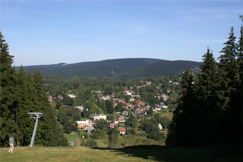 Bohužel přiblížil se i čas návratu domů, čeká nás ještě rozhledna na Plešivci, která byla při naší minulé návštěvě již zavřená a pak již cesta přes Jáchymov, Kadaň a Žatec do Prahy. Tak tedy vzhůru na Plešivec. Projíždíme městečkem Abertamy, které je střediskem především zimních sportů a zvolna po asfaltové silničce vzhůru do výšky 1028 m k rozhledně. Chvíli to vypadá, že zase budeme neúspěšní, nikde nikdo, nicméně po chvíli klepání se z útrob hotelu určených pro personál vynoří postava kuchařky, která nám umožní výstup vzhůru. Ode dneška totiž mají podzimně zavřeno.