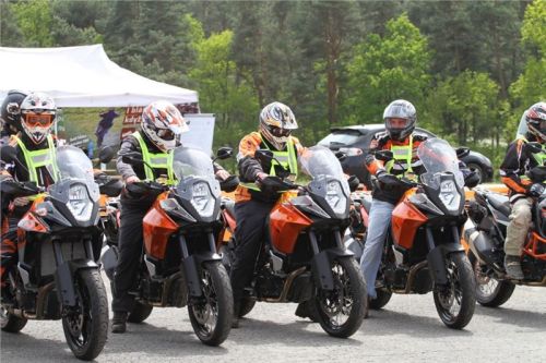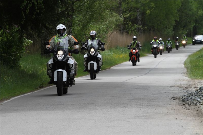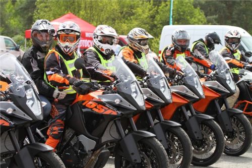 Na běžné silnici si pak zájemci mohli za doprovodu zkušeného předjezdce vyzkoušet nejen motocykly pro asfaltové ježdění, ale také turistické motocykly i do terénu, jako je novinka KTM Adventure 1050 a KTM Super Adventure 1290 níže na obrázku.