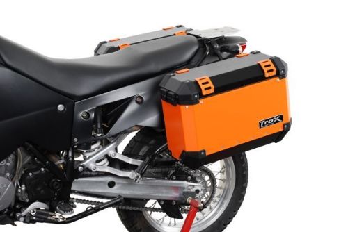 Firma SW-Motech, vyrábějící mimo jiné i kufry TraX, má v sortimentu také kufry oranžové barvy pro motocykly KTM. Dělají se jako boční v objemu 37 litrů a stojí 5763 Kč/ks.