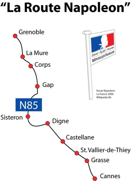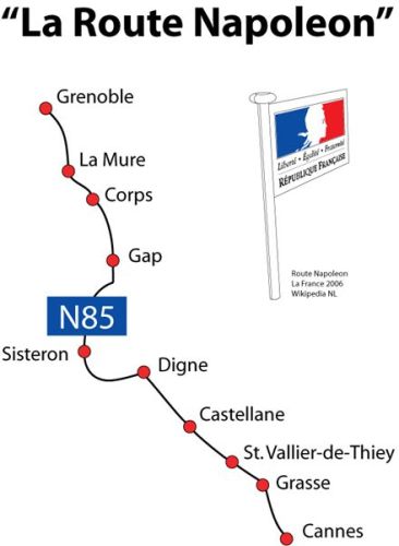 Napoleonova silnice je trasa, kterou císař Napoleon použil v roce 1815 cestou na Elbu. Vede z vnitrozemí na pobřežní riviéru a je sjízdná pro všechny typy vozidel, přesto jde o velice zajímavou cestu. V současnosti je to vlastně 306 kilometrů dlouhý úsek silnice N85.