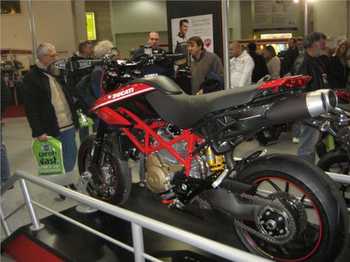 . Výstaviště je trochu vzdálenější od centra, avšak není problém se tam dostat pomocí městské dopravy. V rozlehlém výstavním areálu probíhá několik výstav zároveň, vstupné na tu motocyklovou je 18 £. Za tuto cenu budete ovšem náležitě odměněni. Ve srovnání např. s EICMOU je to sice hodně malá výstava, ale to jí vůbec neubírá na kvalitě. Velikostí je to cca tak třetina Motocyklu v Holešovicích a atmosférou se blíží spíše motohospodě, než výstavě.