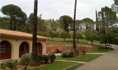 A kousek odsud se nacházela zmíněná International Olympic Academy, kam se vjíždělo přes závoru a vrátnici a museli jste počkat, než vás vpustí. Při mém příjezdu se mne ujal místní správce – charismatický Řek, který přijel na něčem podobném golfovému vozíku a vedle něj na sedačce seděl jeho velký pes. Páníčka velmi poslouchal. Poslední den jsem ale byla svědkem, že ostatní, kteří ho občas hlídají, má na háku. Lehl si na zem, nějaký hoch se mu snažil domluvit, aby vstal a šel a pes ležel a vůbec mu nevadilo, že se ho snaží mladík tahat za krk jak kačera, což samozřejmě s ohledem na jeho hmotnost (odhaduji 60 kg) nebylo reálné… Byl to super psí pohodář :-).