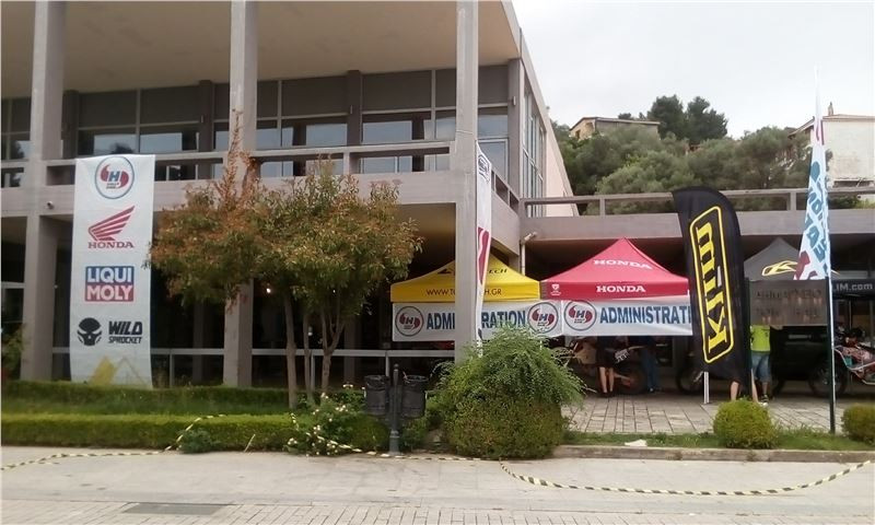 Při příjezdu do Olympie už mě vítaly závodní endura, kterých tam logicky bylo habaděj – vzhledem k tomu, že další den začínal Hellas Rallye Raid. Vydala jsem se tedy hledat nejakou administrativní budovu, abych se mohla po příjezdu zaregistrovat a vykomunikovat ubytování. Podle množství vlajek jsem byla za chvíli tam.
