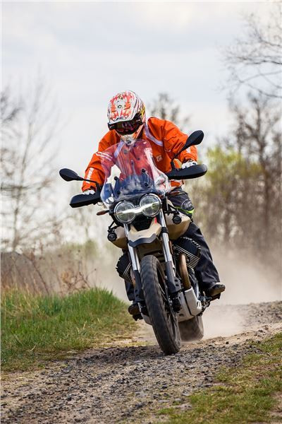 V85 TT hladce kombinuje skvělé klasické linie off-roadového světa s pokročilými technologickými prvky, jako je digitální přístrojovka a plné LED osvětlení. Denní svícení v předním světlometu je hrdě ozdobeno jasnou siluetou oslavovaného orla Moto Guzzi. Namísto kapotáže má V85 TT větrný štítek z kouřového plexiskla a chrániče rukou, které z něj dělají motocykl pro celoroční využití, připravený vydat se za dobrodružstvím, kdykoliv dostanete chuť.