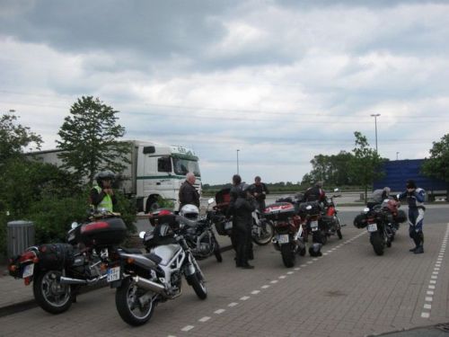 . Což nás ovšem nezaskočilo - nakrmili jsme sebe i naše mašiny na pumpě přes ulici a po společném fotu vyrazili směr hranice. Čekalo nás 600 km, převážně po dálnici, do města Sande, kde jsme měli na dvě noci rezervované pokoje v penzionu Bünting