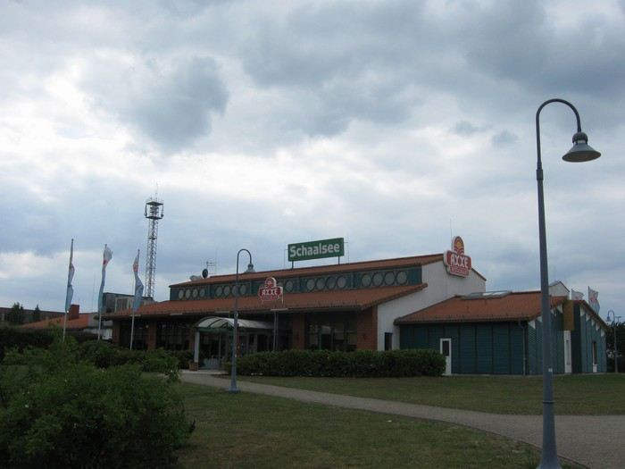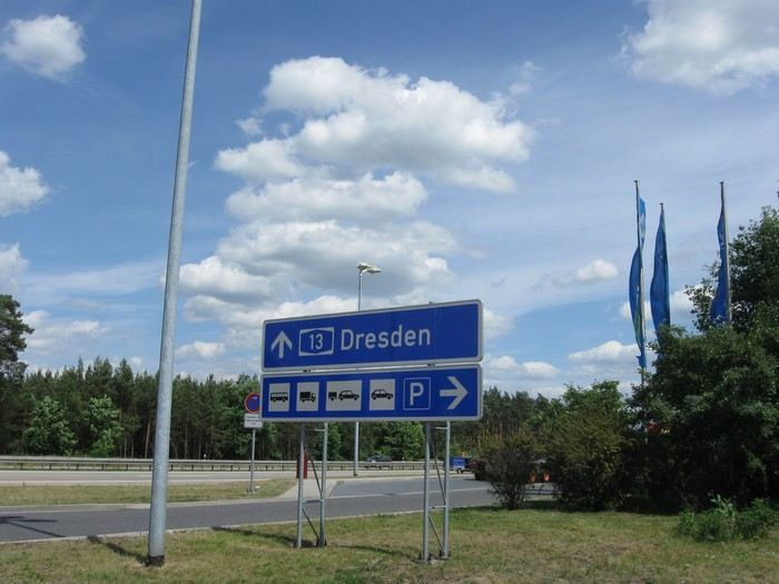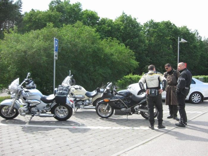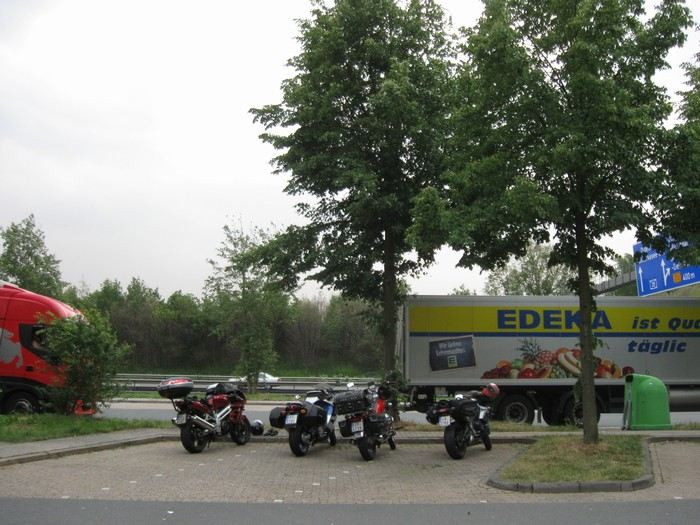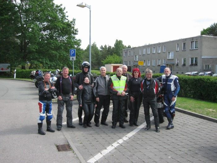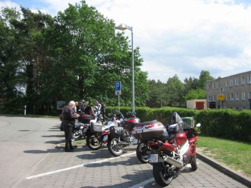 V sobotu ráno jsme zaplatili, udělali společné fotky,rozloučili se a za krásného počasí vyrazili na 463 km dlouhou cestu ze Sande do Falkensee u Berlína. Až k Magdeburgu vlastně stejná trasa, pak ale na Brandenburg, Potsdam, Falkensee. Opět po dálnici, přestože nás Peter varoval, že na Magdeburg to není dálnice, ale jedno jediné velké staveniště. A u Magdeburgu, kde se sjíždí několik dálnic, bude prý totální zácpa. A byla... Takže na dvojku, nohy na zemi, slalom mezi auty... Celá naše parta zůstala pohromadě, ani v téhle situaci se nikdo nenechal odtrhnout! A zase jsme jeli rychleji, než jsme předpokládali, stavěli jsme vlastně jen kvůli tankování. Počasí už nebylo tak krásné, honily se mraky, ale nepršelo.