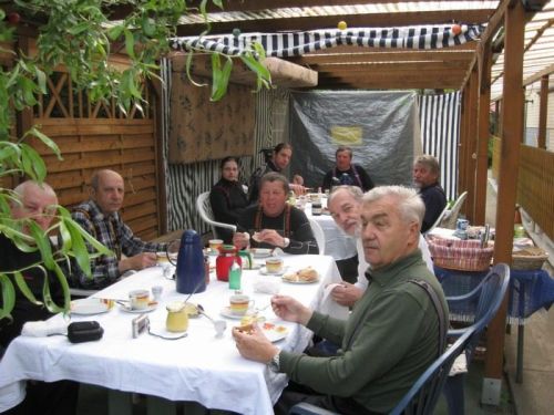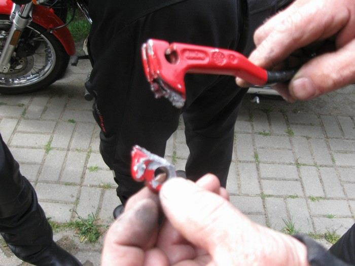 . Tak jsme se snažili... Takže opět všeobecná spokojenost a výborná nálada, až do té chvíle, než Miko zjistil, že se mu do rána „sama od sebe“ ulomila spojková páčka a vytrhlo lanko... Ale kluci si nakonec poradili: za romantickou brankou stojí v zahradě nenápadná dřevěná kůlnička-dílnička, plná nářadí! Do té je paní domácí pustila a pak jen koukala, co dokážou šikovní kluci z Čech a Moravy