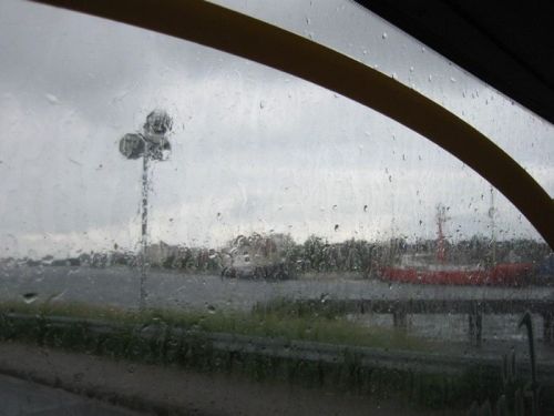 Pršelo čím dál víc, byli jsme rádi, že jsme v suchu. Navíc je most (Kaiser-Wilhelm-Brücke), přes který je přístup k muzeu, od loňského podzimu v rekonstrukci, takže bychom se asi bývali pěkně motali. Takhle nás autobus dovezl – s jedním přestupem – ode dveří ke dveřím. Když jsme vystupovali před námořním muzeem, měli jsme pocit, že na nás někdo vylil škopek. Lilo a lilo a lilo...