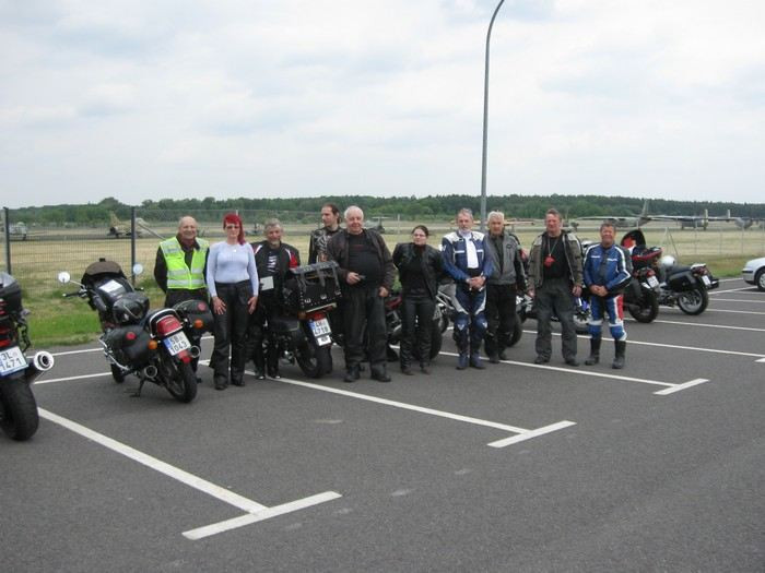 www.luftwaffenmuseum.de na letiště Gatrow v Berlíně, vzdálené jen 16 km. Tady je vstup zdarma, resp. je možné zaplatit podle vlastní chuti a možností. Ve vrátnici jsou sice k dispozici uzamykatelné skříňky, ale helmy se do nich nevejdou. Zeptala jsem se paní, jestli by nám je někde uložila, abychom je nemuseli nosit. Nebyla moc ochotná, ale udělala to. A pak už jsme jen chodili a koukali... Venku na ploše jsou „moderní“ exponáty, v hale historické. Po společné fotce jsme nasedli a jeli směr hranice.