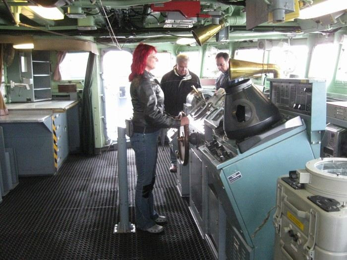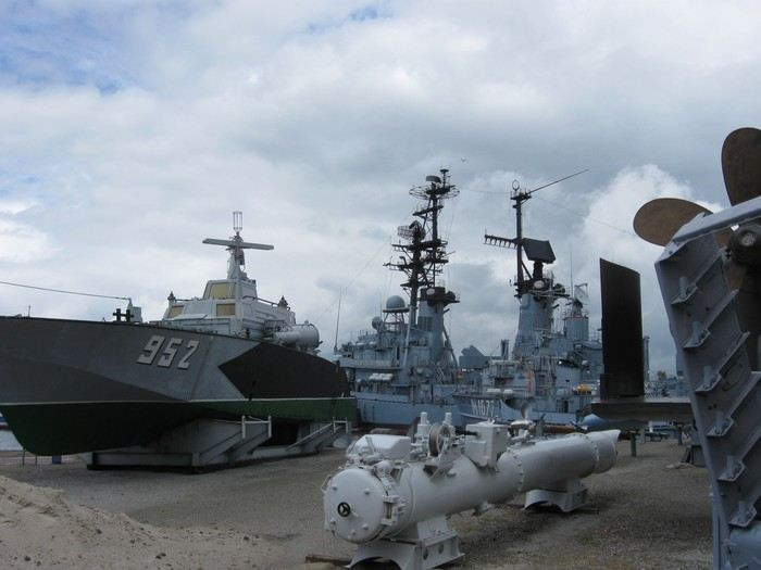Venku stále lilo, tak jsme si prohlíželi expozice v hlavní budově a čekali na lepší počasí, abychom vyrazili na prohlídku venkovních exponátů. Dočkali jsme se, vítr rozehnal mraky a vysvitlo slunko. Hurá ven! Bylo na co koukat. Počasí se měnilo každých pár minut... Prudké přeháňky jsme využili k prohlížení útrob ponorky a lodí a když se mraky přehnaly, prohlíželi jsme si vše zvenku.