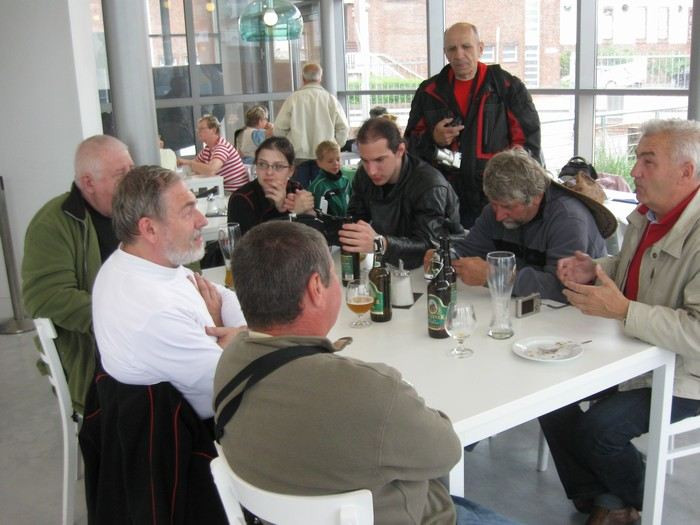 Vrátili jsme se zpátky a sušili se u lahvičky piva. Na doporučení pana Büntinga jsme si chtěli dát nějakou rybí specialitu na Back-Fisch Kutter, ale bohužel bylo zavřeno. Trochu jsme se prošli, po návratu ostatních z plavby po přístavu udělali ještě skoro společné foto před muzeem – Mirek zatím udělal pár velice zajímavých snímků někde úplně jinde...