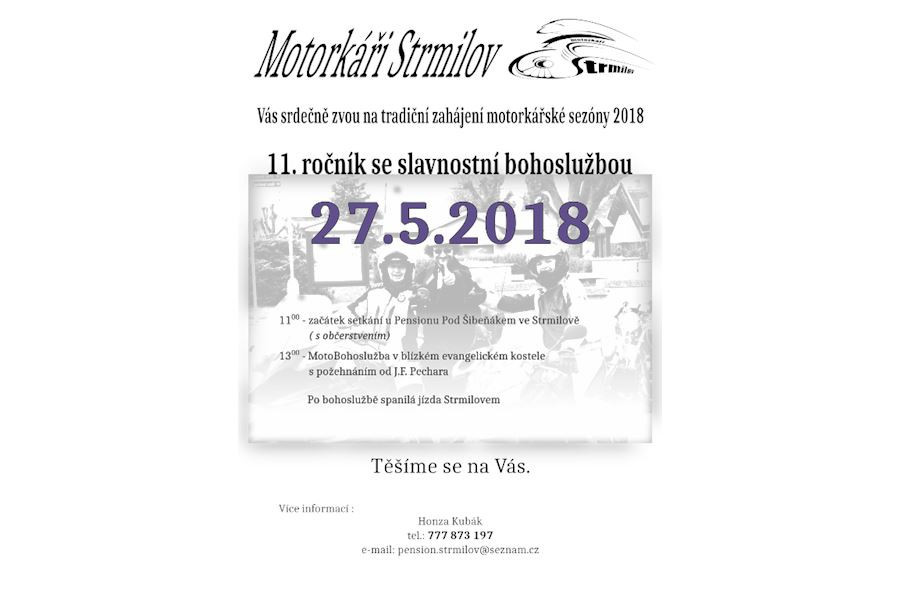 Bohoslužba bude 27.5.2018 od 13.00 hodin v evangelickém kostele ve Strmilově, od 11:00 začne setkání u Pensionu "Pod Šibeňákem" s občerstvením. Pokud to máte do Strmilova z ruky, můžete se ve stejném místě i ubytovat www.pension-strmilov.cz.