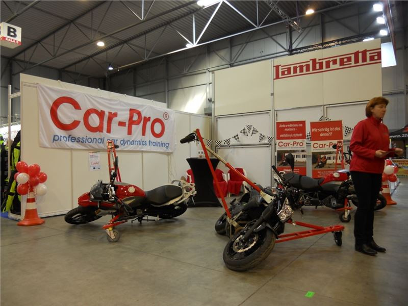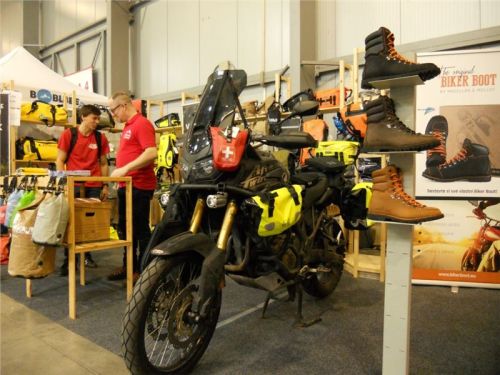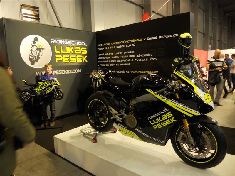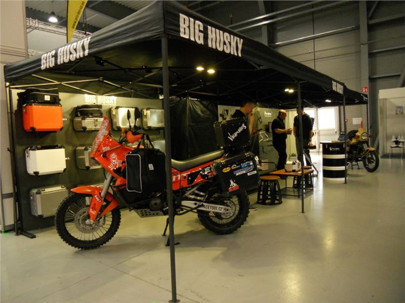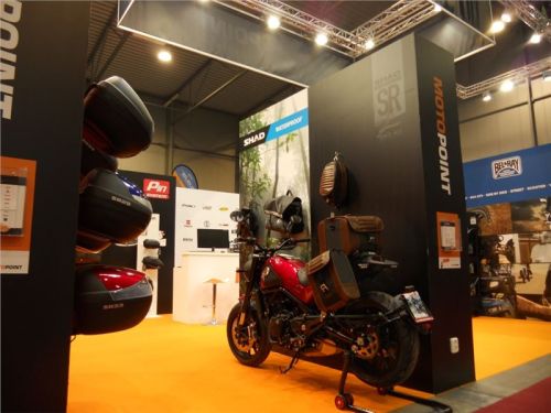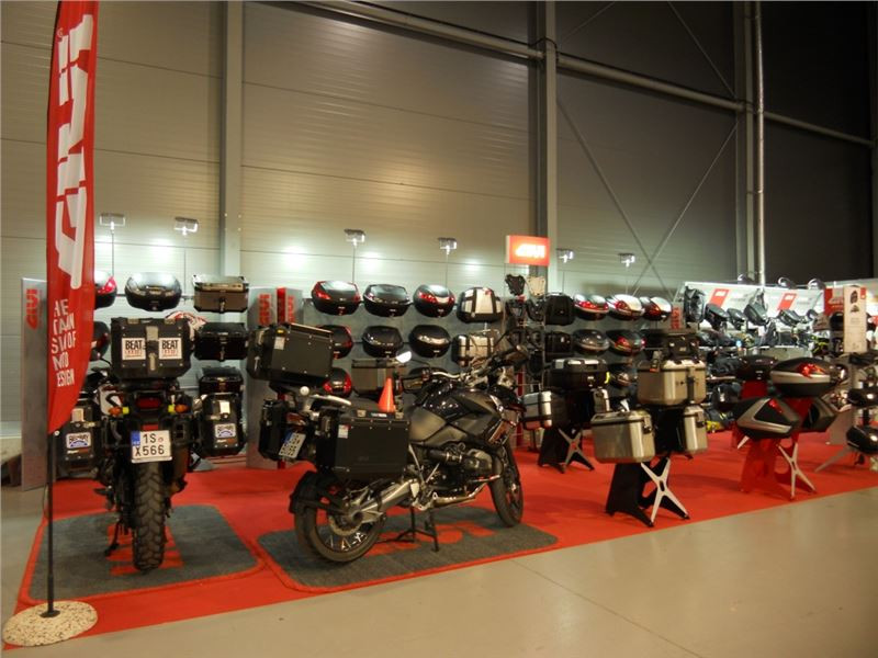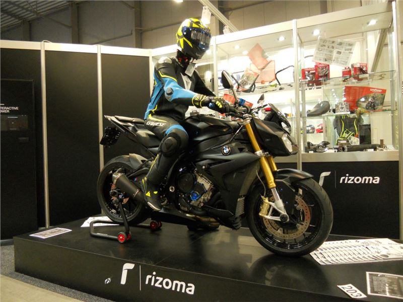 Firma je dovozcem značek AGV, Arai, Dainese, Held a mnoha dalších. U jednoho ze vchodů do rozlehlé expozice stojí v plné kráse BMW S 1000 R vyšperkované doplňky Rizoma . Vychytávkou je stojan s tabletem, kde si najdete svou motorku a digitálně načančáte doplňky od Rizomy. Pěkné.