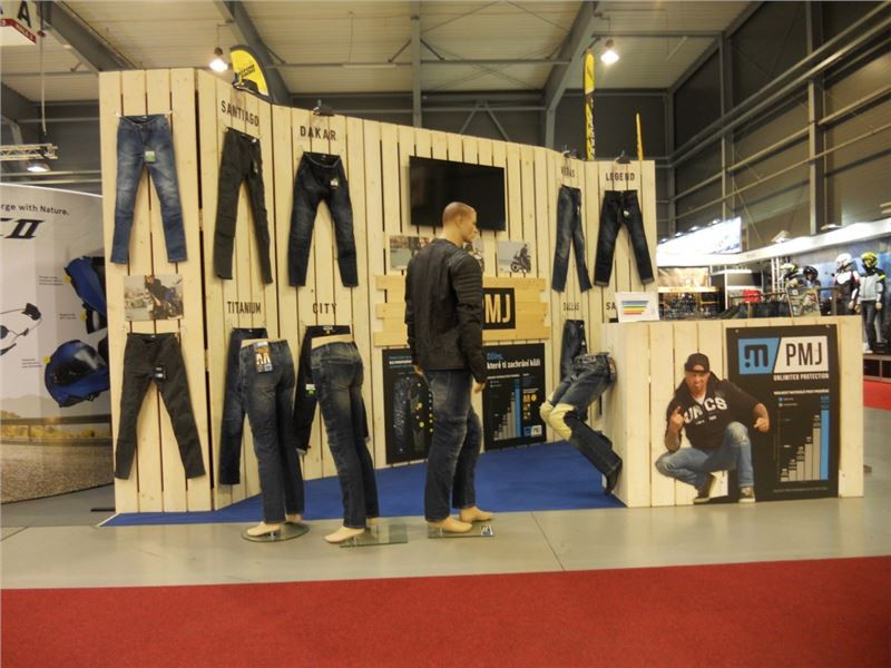 Na stánku Moto Jitka můžete prohlížet novinky značky Modeka, kterou doplňují jeansy City Nomad a kožená móda TRP. Loňská novinka – pánský komplet Panamericana – je letos doplněn dámskou verzí Panamericana Lady, nové jsou bundy Aeris, Neox a dámská Moxy Lady.