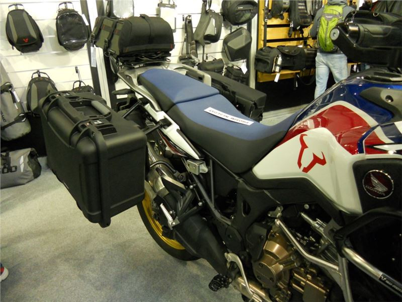 Ráj pro všechny cestovatele prezentuje zvýšené padací rámy pro nové modely Honda Africa Twin a taky suprové plastové kufry s velmi vysokou odolností proti poškození s označením Nanuk a objemem 35 litrů. Pro dvanáctistovky BMW GS od roku výroby 2017 má SW-Motech padací rámy z karbonu.