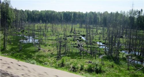 Jak to souvisí s cestou Murmansk – Petěrburg či naopak? No jednoduše. Opravdu se tam dá po nové asfaltce jet stovkou nebo stočtyřicítkou. Pak ale nevidíte, jak se mění arktická tundra a tajga, jak každý močál je jiný, jsou jiné stromy a květena. Nezjistíte, že ze silnice vedou odbočky, sice hliněné gruntovky nebo často rozbité asfaltky, ale dovedou vás na zajímavá místa.
