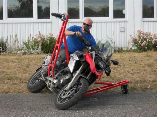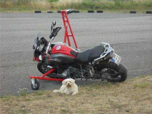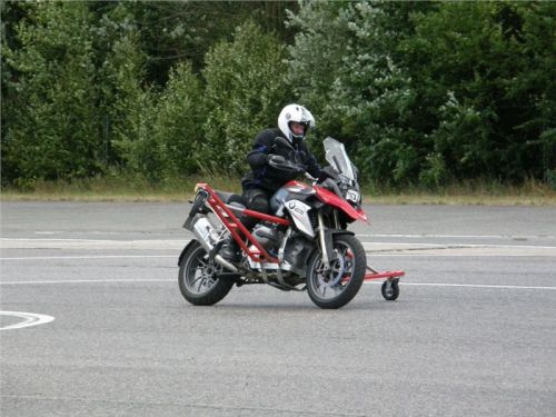 Už je to tady :-) Jdeme jezdit a teorii převést do praxe. Tvoříme dvě skupinky a já se dvěma Michaeli dostáváme k ježdění GS 1200. Trochu se děsím situace, co bude, když mi motorka upadne. Aha... Nemůže upadnout, mám křidélka. To je paráda.
