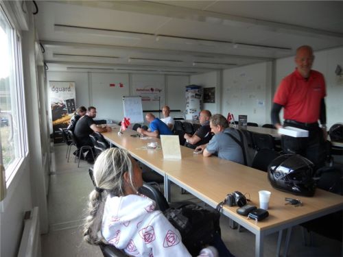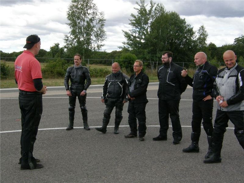 O ubytování ve městě i v nejbližším příhraničním okolí není nouze, proto hned ráno po snídani pěkně vyspinkaný s předstihem vyrážím na trénink. Míjím správnou odbočku z dálnice a příjezd do cíle si tak prodlužuji o dobrou půlhodinku. Přitom je to od správného sjezdu jen 7 minut cesty. Jejda... Šahám do nejhlubších míst paměti s hodinami německého jazyka na základní škole a otevírám dveře výukové místnosti. Guten Tag, mein name ist Marek Olbert und ich entschuldige mich für die Verzögerung. Vysoký sympatický týpek ve firemním tričku mi česky říká: „ahoj, nic se neděje, posaď se mezi nás“. Hned je mi lépe. Instruktor a jednatel společnosti Frank Liske mi představí svou ženu Ivu, která mi bude po dnešní den překladatelkou a částečně i mentorkou mého řidičského školení. Všechno je strašně v pohodě, Frank vysvětluje šesti německým účastníkům kurzu, co se dnes bude dít a Iva vše překládá a přidává i něco navíc. Po nezbytném papírování vyrážíme na cvičiště, do docela slunečného dne.