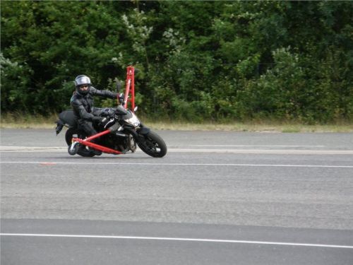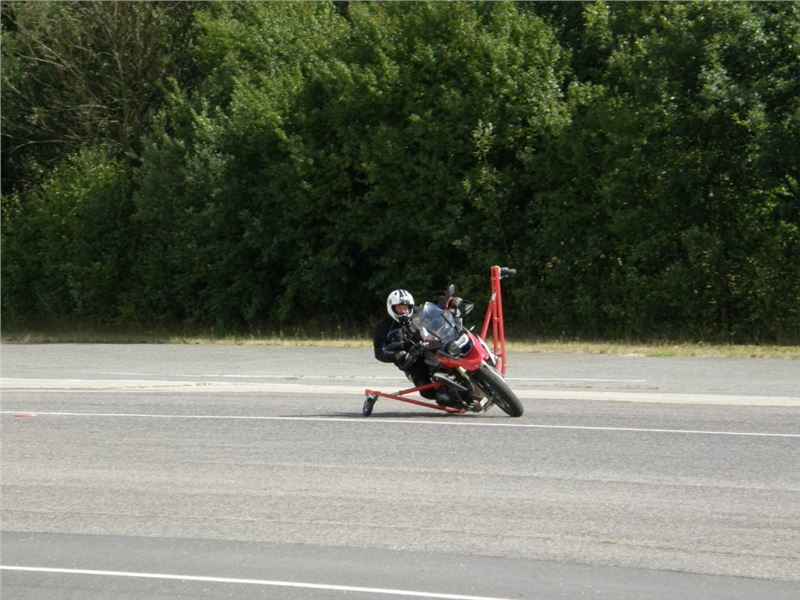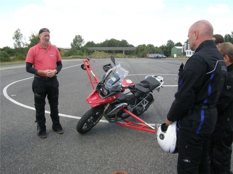 Frank nás nabádá k vyzkoušení různých jízdních pozic, abychom si uvědomili rozdíly v ovladatelnosti motocyklu a složitost či jednoduchost následné změny směru jízdy, podle zvoleného sedu. Každé ježdění se po vystřídání všech účastníků opakuje a máme tak možnost si předchozí zkušenosti znova vyzkoušet.