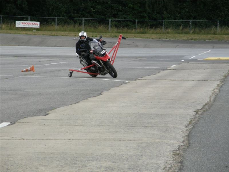 Celá akce má spád a ve čtyřminutových intervalech se všichni na cvičišti vystřídáme, aby se nám v kroužení nezamotala hlava, přitom jsme dostatečně pochopili, co a jak udělat a kam se za jízdy dívat. Smyslem je kopírovat kruh a jen lehce se dotýkat opěrným kolečkem o asfalt. Vše se odehrává v symbióze správného sedu, tlaku na řídítka a vhodně otočené plynové rukojeti. Hledání rovnováhy mezi několika fyzikálními jevy, tak trochu balet na dvou kolech.