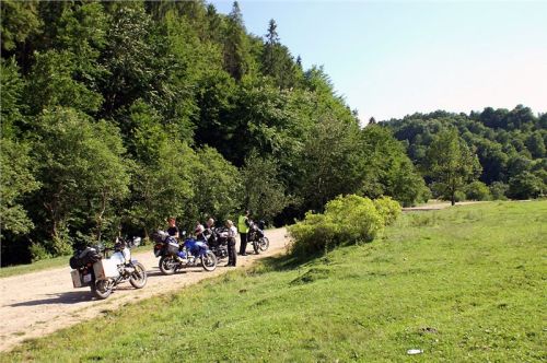 Tady konečně začíná to, pro co jsme (mimo jiné) sem jeli. Venkovské vedlejší silničky, v našem pojetí tedy spíše polňačky a lesňačky občas nevalné kvality a sjízdnosti. To vše je ovšem více než vyváženo syrovou a nedotčenou přírodou, takřka prostou lidských bytostí a znaků jejich přítomnosti. Tedy, popravdě, lidstvo připomínají pouze odpadky a cesta :-(. Ok, tak se tedy do toho dáme. Ale protože se nám hned kousek za vsí, ještě před stoupáním naskytne malé piknikové zákoutí s potůčkem, zastavíme na chvilku k odfrku. Přitom se u nás zastaví dvojice mladíků v autě, pokecá a potvrdí Jindrovi, že zamířil správně. Mě je tady GPSka s pouhou základní mapou víceméně k prdu, slušněji jen k zápisu tracku.