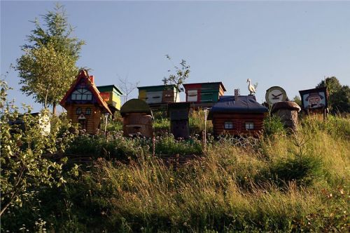 Druhou zastávku dáme o kousek dál, zaujme nás kolekce netradičních úlů obklopující jednu z usedlostí.