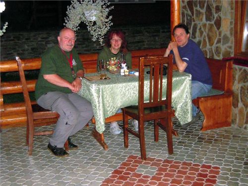 Naštěstí, mají tu stinnou zahrádku a hned vedle plac na mašiny, prázdno, slušnou nabídku jídel a příjemnou a celkem i pohlednou (i když vyšší) servírku. Výběr, alespoň v mém případě je jasný. Jako zastánce lokálních nabídek volím brynzové halušky, stejně jako většina ostatních. Zuzka sice varuje před negativním působením výše uvedeného na peristaltiku, ale svým útrobám věřím a vkládám do nich naději, že si s tím poradí beze ztráty květinky. Koneckonců, vezu si i patřičný špírák.