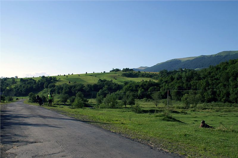 V Malém Berezném zabočíme na hlavní silnici vlevo a míříme po hlavní na sever a posléze severovýchod, víceméně podél hranice. Nespěcháme, bereme to jako poznávací jízdu, kdy je čas počumovat kolem a sledovat přeci jen tak trochu jinou civilizaci. Ale není to žádné drámo, nebýt odlišného autoparku a občasného reliktu sovětského panování, člověk by si mohl připadat jako někde na Slovensku nebo Maďarsku. Co je však dosti odlišné, je skoro absolutní absence směrovek a podobných civilizačních vymožeností. Tak se stane, že asi po hodině jízdy míjíme kýženou odbočku a musíme se na ni kousek vrátit.