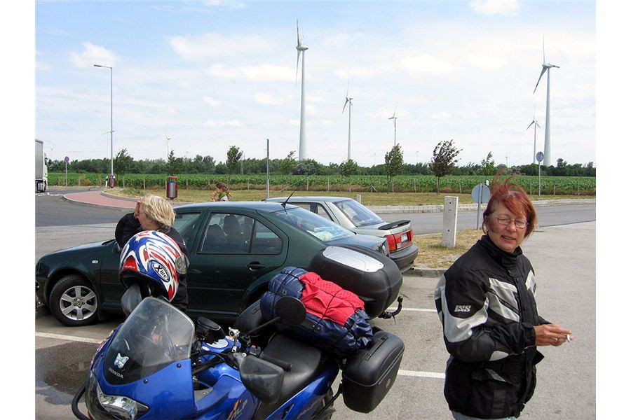Na parkovišti za čerpačkou se tedy loučíme pro tuto dovolenou s tím, že oni si zde odpočinou, no a já jedu napřed. Další zastávku prej budou mít na oběd v motorestu před Břeclaví. Tak buďto tam dojedu a ještě se uvidíme, nebo mě spatří stát bezradně na krajnici. Tož tak, mějte se dobře a šťastnou cestu...