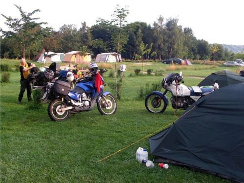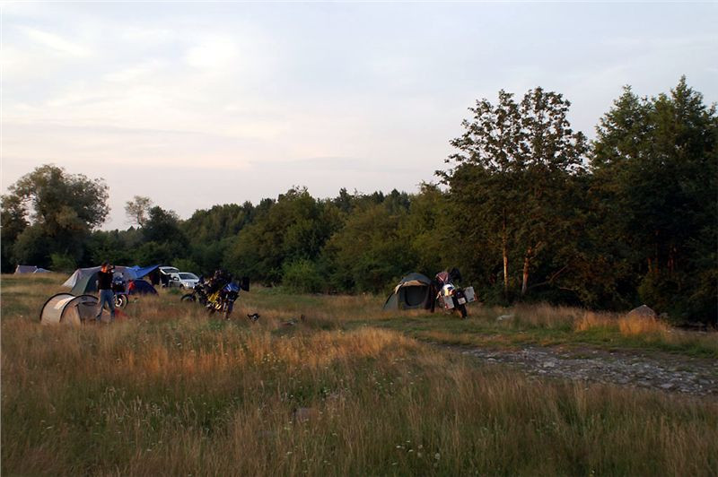 Najdeme si každý svoje místečko na poměrně nerovné louce. Táboří se tu podle počtu ohnišť asi intenzívně – co však mi rozum nebere, je vlkodlašský způsob základní hygieny. Hned vedle ohnišť je totiž rozeseto lidských výměšků jako sedmikrásek. Co člověka vede k tomu, že se vysere hned vedle ohně, nechápu.... Když se k tomu ještě přidají kravské lívance, je docela technický rébusek umístit můj přeci jen větší staník bez potupného znečistění. V noci, až vyrazím za voláním přírody, to teprve bude hoňka a fekální adventůra :-(.