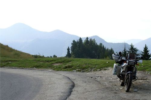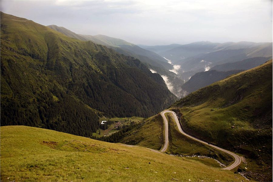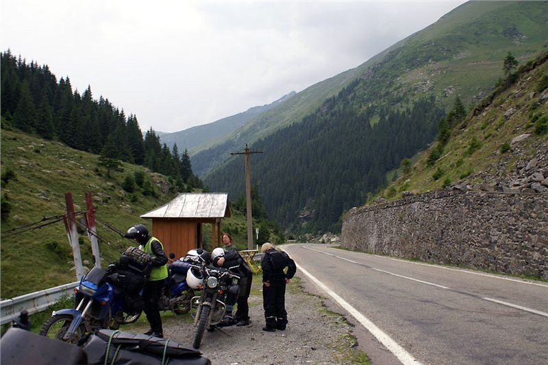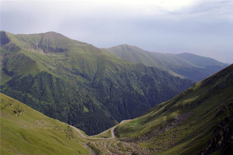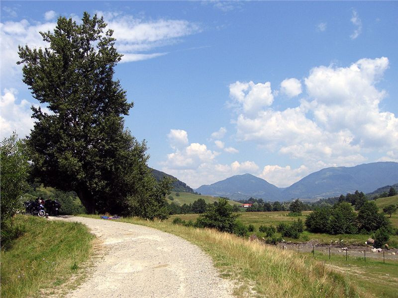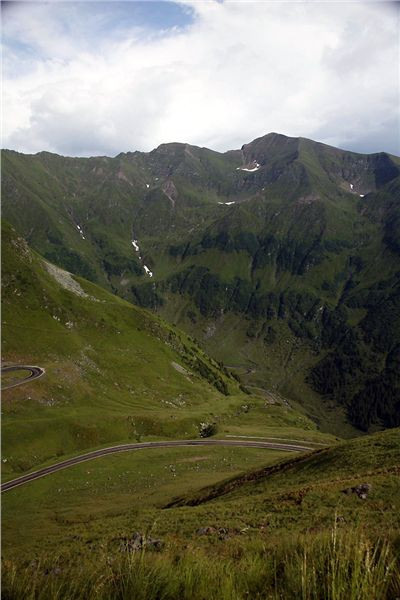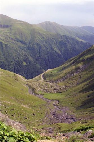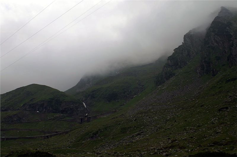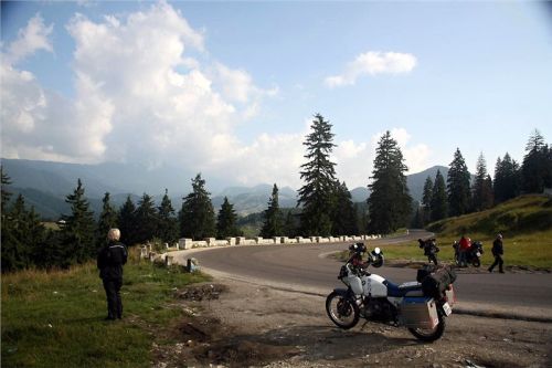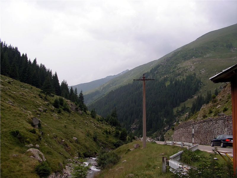 Ve čtvrt na devět už jsme sbalený a můžeme zavrčet. Vykouklo i sluníčko, teplota je zatím příznivá, takže vyrážíme do hor. Průjezd průsmykem Pasul Giuvala (1290 m n.m., 1268,2 podle mne), který odděluje pohoří Munţii Bucegi (starší si budou pamatovat rumunský, extra hnusný a poruchový, náklaďáky Bucegi, které se u nás objevily v šedesátých létech, ještě než se naši pupíci stačili s Nicolaem Napichovačem rozkmotřit) od hlavního hřebene Făgăraş, patří k tomu hezčímu z letošních Vlkodlak.