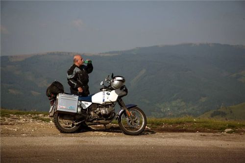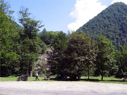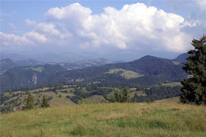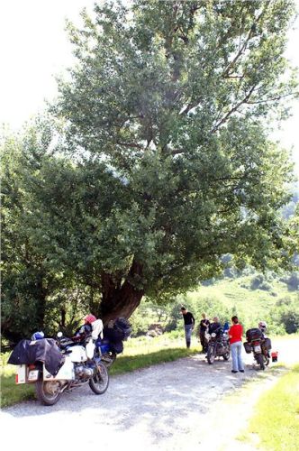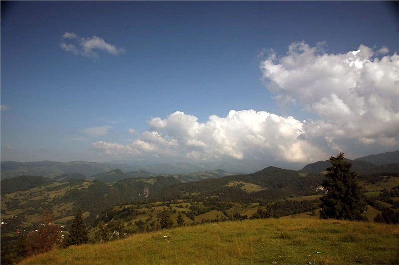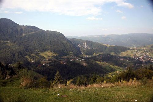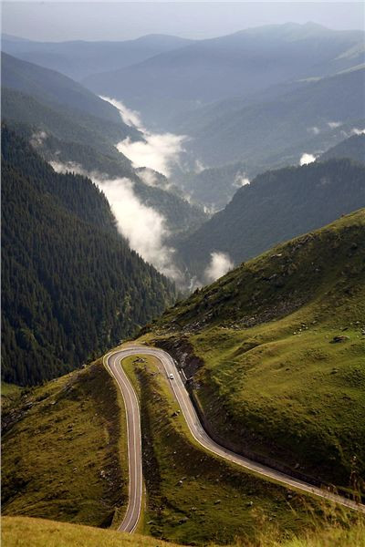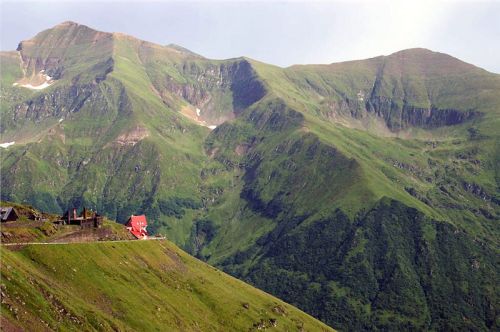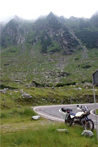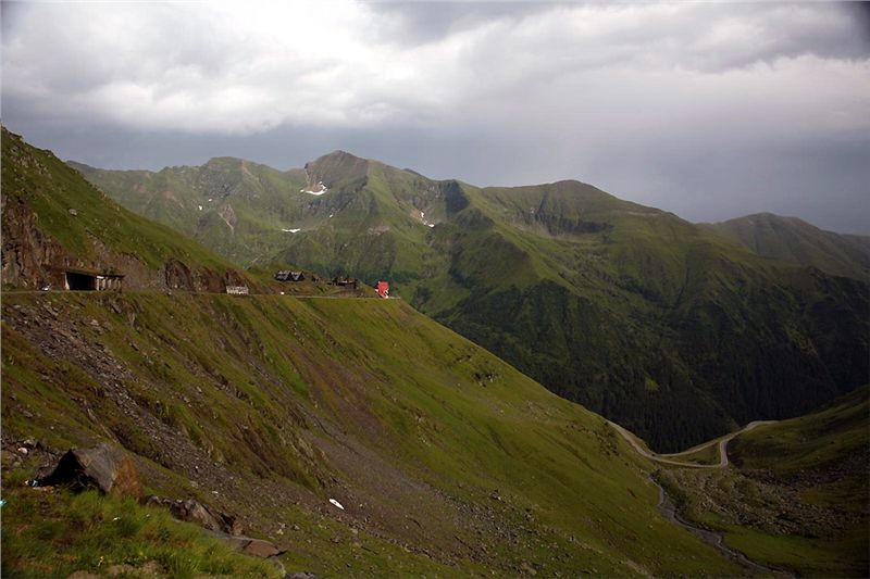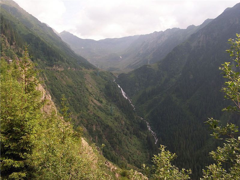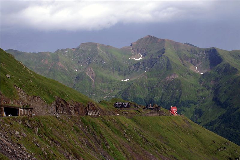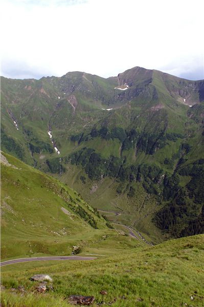 Ve čtvrt na devět už jsme sbalený a můžeme zavrčet. Vykouklo i sluníčko, teplota je zatím příznivá, takže vyrážíme do hor. Průjezd průsmykem Pasul Giuvala (1290 m n.m., 1268,2 podle mne), který odděluje pohoří Munţii Bucegi (starší si budou pamatovat rumunský, extra hnusný a poruchový, náklaďáky Bucegi, které se u nás objevily v šedesátých létech, ještě než se naši pupíci stačili s Nicolaem Napichovačem rozkmotřit) od hlavního hřebene Făgăraş, patří k tomu hezčímu z letošních Vlkodlak.