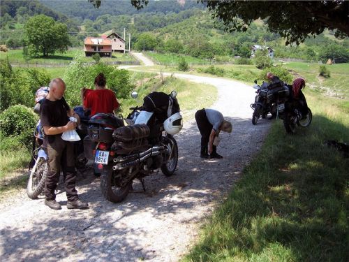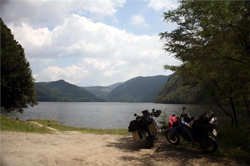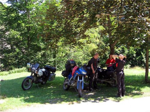 Koupel je parádní, voda samozřejmě spíše chladnější, což je jen a jen dobře. Perfektně si zaplavu pár set metrů, dámy mezitím předvádějí něco na způsob Afrodit, vynořujících se z mořské pěny :-). Na tu dálku vidím jen bělostné zadečky, svítící na pozadí bujné zeleně a temné hradby lesa :-). Když konečně spoutají své vnady motooděním, přesunu se na břeh a rychle uschnu v odpoledním slunci. Ani nemusím tasit ručník...