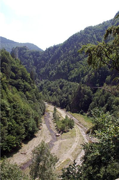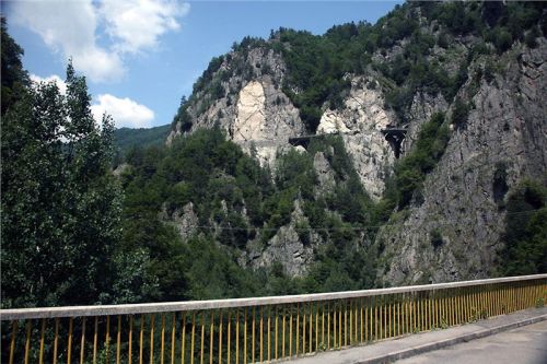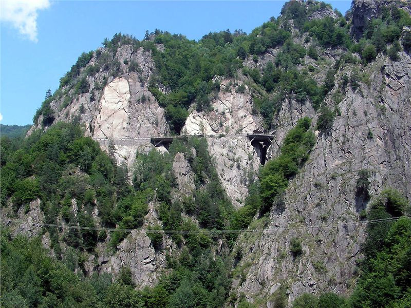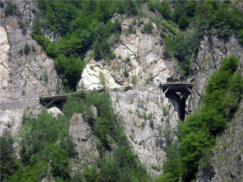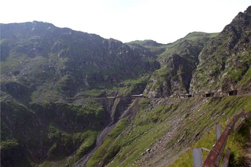 Budování transfăgăraşké silnice si zřejmě vyžádalo něco přeložek, neboť zastavíme u celkem zachovalého, leč opuštěného a uzavřeného mostu přes sevřenou soutěsku. Nad ním silnice střídá tunely a mosty, docela to tu připomíná