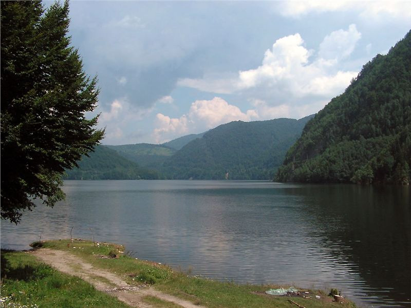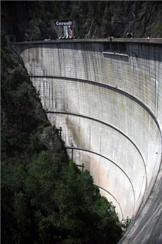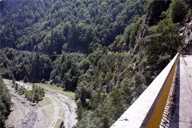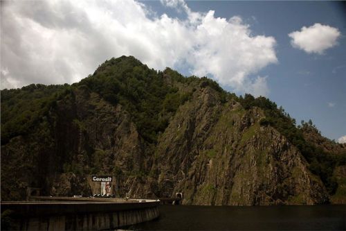 Ještě pár kilometrů a silnice nás vyplivne na korunu přehrady Vidraru. Stavíme ve stínu na levém břehu, brzké odpoledne je poměrně žhnoucí, okolní skály jsou docela slušně natopeny. Přesto si postupně všichni prohlédneme bezesporu impozantní stavbu. Ta jakoby z oka vypadla Kolbrein Talsperre v údolí Malta v jižním Rakousku, třeba. Klenbová hráz, překvapivě filigránská, na rozdíl od svých kolegyň, měří necelých 166 metrů od paty po korunu.