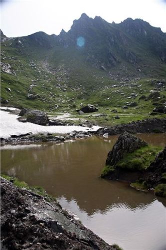 Moje fotopaměť zafunguje, rozhlídnu se a vidím, že už jsem tady byl. Pravda, pár baráků tady přibylo, ale neomylně identifikuju místo nad plesem, kde jsme tehdá s Janou stanovali, mimochodem, v absolutní samotě a opuštěnosti. Třicet let najednou jako by nebylo.... Jo, kdyby tak teďka tady byla, paní dochtor, ta mi zde chybí, moc a moc, k absolutní spokojenosti. Ale co se dá dělat, nic není dokonalé. Tak jí to alespoň na památku a připomínku nafotím.