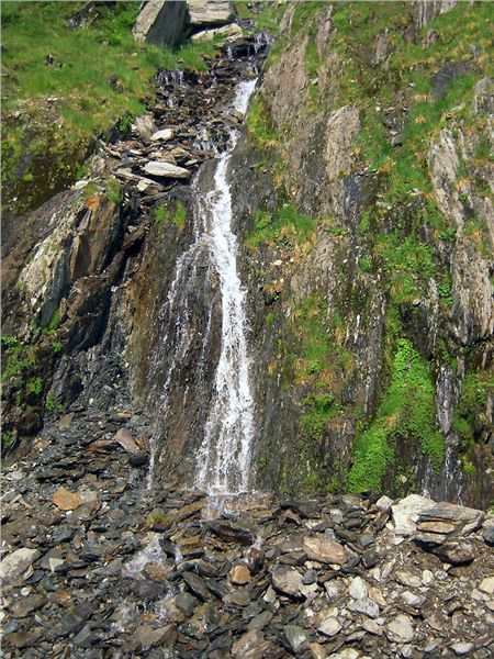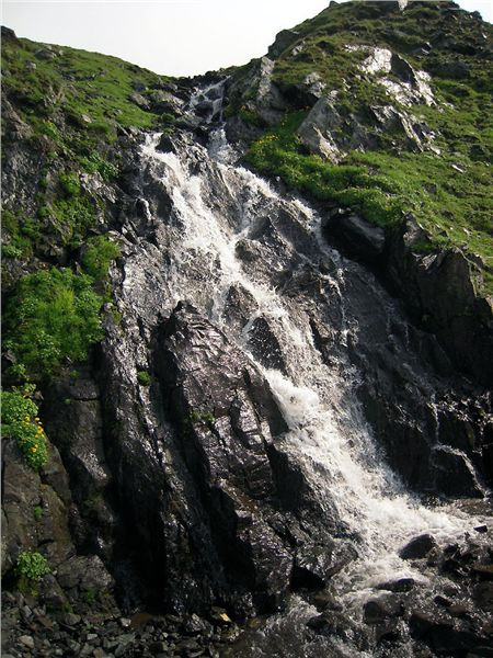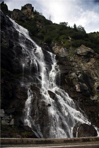A dobře jsme udělali. Z údolí stoupá pára, vše se po slejváku blyští a leskne, vzduch je projasněný, neb prach z něj teď plave někam k Černému moři. Takže pozvolna, s několika zastávkami, sjedeme až skoro na dno údolí k jednomu z mnoha vodopádů. Tady chvilku postojíme, vychutnáme si syrový, mokrý půvab místa a pěkně na kochačku se vrátíme k severnímu portálu tunelu.