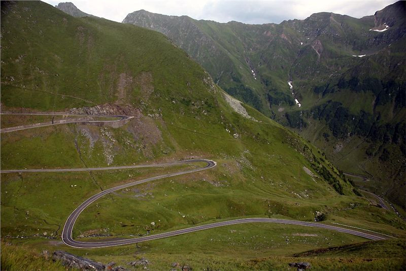 Po chvilce jízdy se před námi začíná rýsovat Făgăraş v celé své kráse a mohutnosti. Silnice začne šplhat po strmých úbočích skalnaté soutěsky, takže zase přijde na řadu pár fotostopů.
