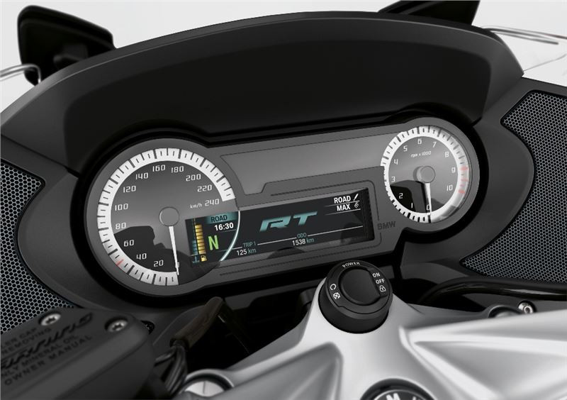 R 1250 RT je vybaveno displejem s úhlopříčkou 5,7“, který doplňuje analogový rychloměr a otáčkoměr.