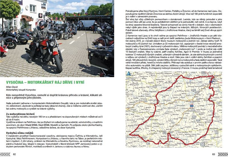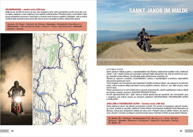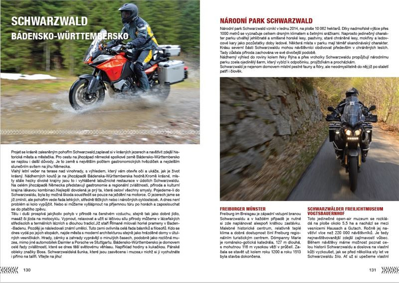 Kniha obsahuje popisy zajímavých míst a motorkářských okruhů, přehledně vyřešené itineráře, mapy a množství ilustračních fotografií. Formát publikace je A5, rozsah 176 stran + obálka, vazba je lepená.