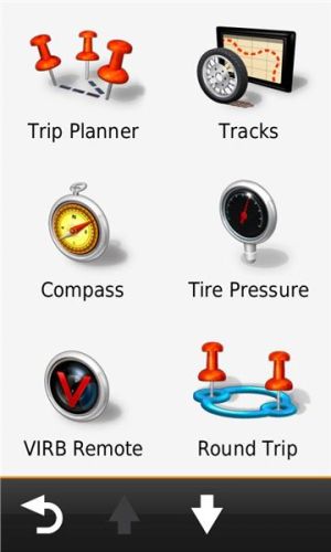 Zumo 590 je high-end model, to znamená, že se v něm objevily dvě specifické funkce, které byly představené v Zumu 390 - podpora bezdrátových snímačů tlaku v pneumatikách a podpora ovládání kamer VIRB. Obě funkce není asi potřeba představovat, jen stručně připomenu, že bezdrátové snímače se dokupují po kuse a navigace umí pracovat s dvěma páry (např. na dvou motocyklech) a zobrazovat varování na pozvolný nebo prudký pokles tlaku v pneumatice a zabránit tím třeba poškození pneumatiky nebo ráfku nebo i havárii.