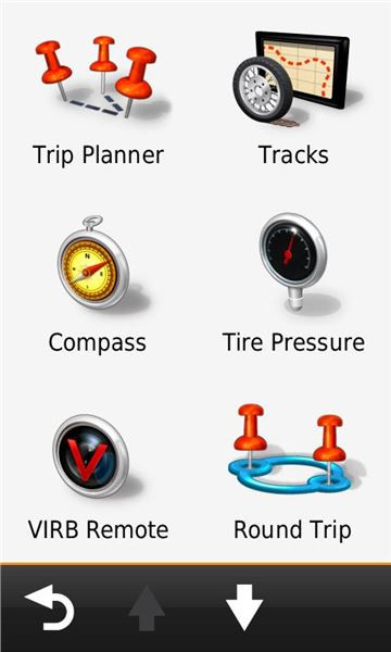 Možná vás napadne otázka, jestli je v Zumo 590 funkce zpětné navigace po trase kudy jste jeli, tak ano - trackback je zde také, jen je na jiném místě než dříve. Vlastní stránka s tabulkou pro zadání bodů trasy (start, průjezdné body, cíl) je změněná také a velmi snadno se v ní posouvají průjezdní body pouhým posunem řádku prstem.