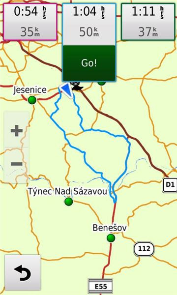 Další praktickou funkcí je možnost prolnutí cizí (nebo vlastní) importované prošlé stopy do mapy, což jsme již zmínili v předchozím textu. Novinkou je ale možnost okamžitého přepočtu této stopy na navigační offroadovou trasu prakticky bez rizika chyby výpočtu z důvodu příliš dlouhé trasy. Geniálně jednoduché a funkční řešení.