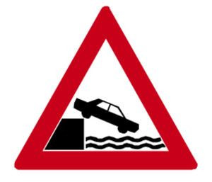 Značka upozorňuje na komunikaci směřující na nechráněné nábřeží nebo břeh vodní plochy.
